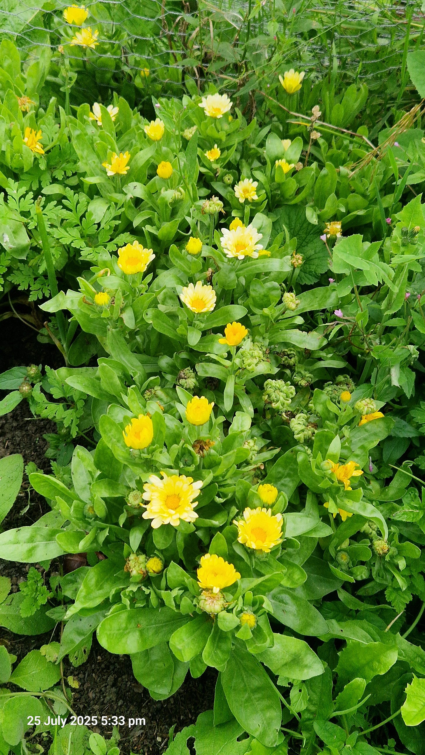 Calendula – Self-seeded everywhere. Feeds pollinators for months. Edible petals. I will dead head some to keep flowers coming but also leave some to seed and for me to collect.