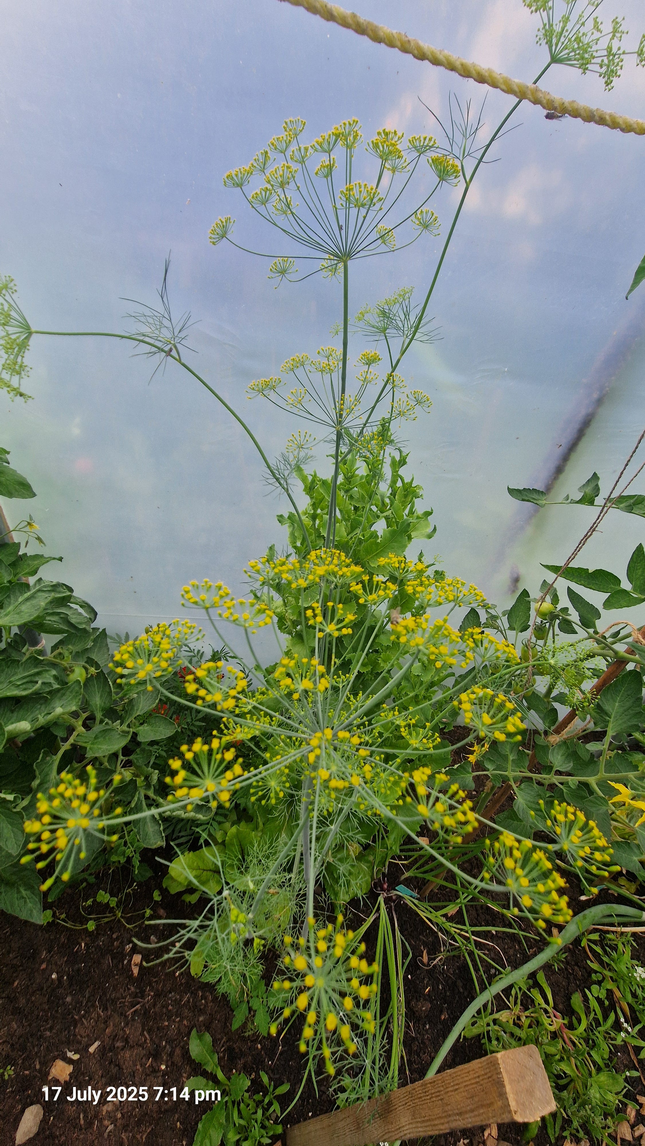 Dill – Intentionally planted, now flowering and drawing in all sorts of tiny predatory wasps.